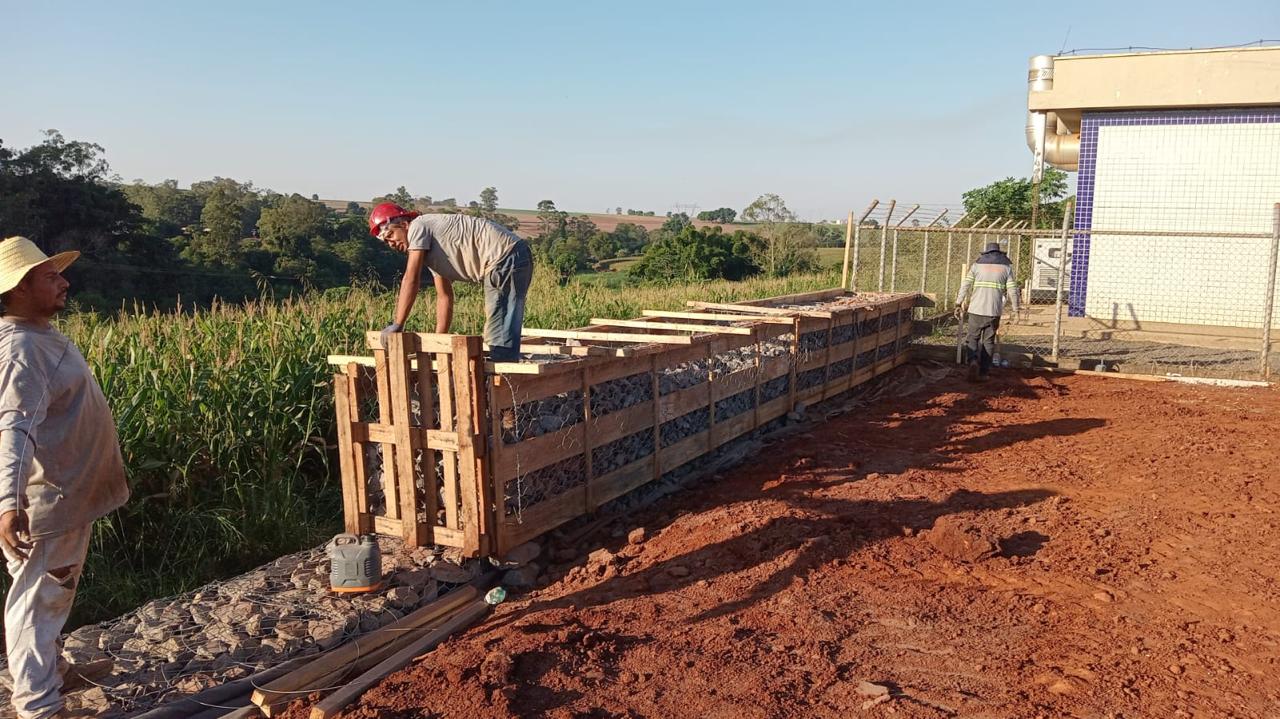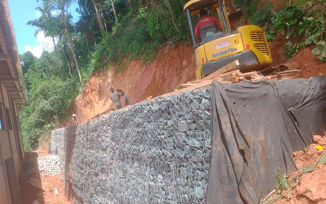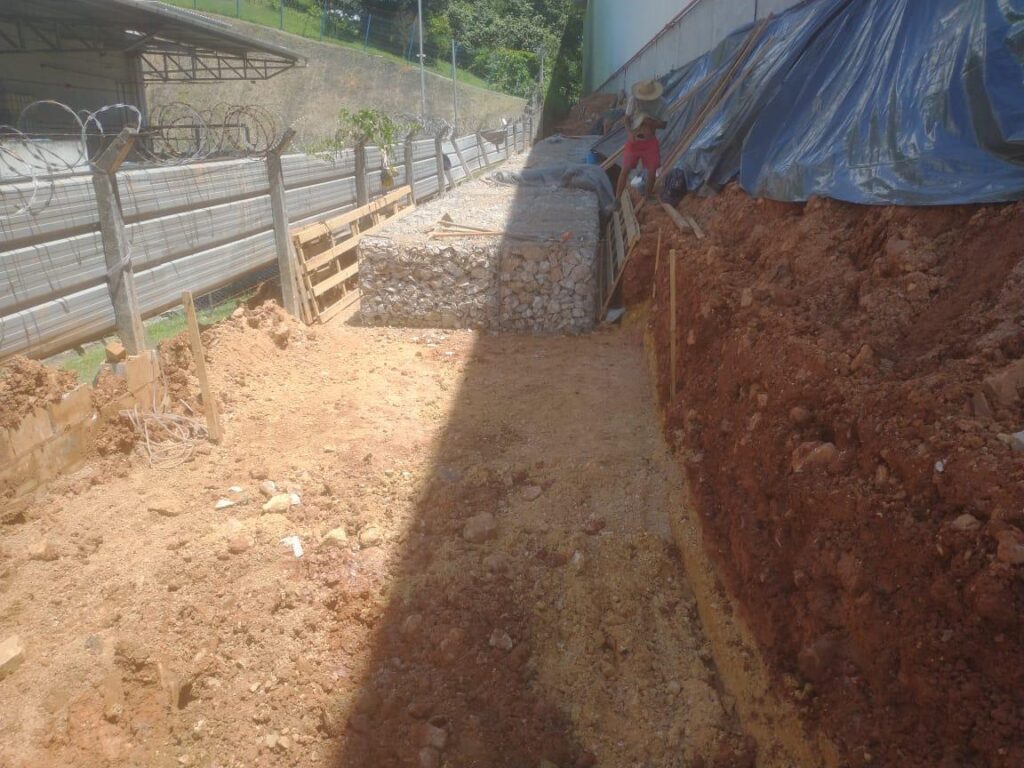 Construção de muros de gabião